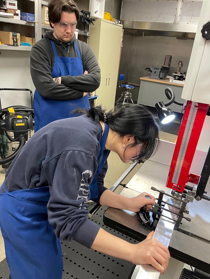 Basic hand tools, benches, milling machine, lathe, drill press, bandsaw, CNC mill, grinders and sanders.