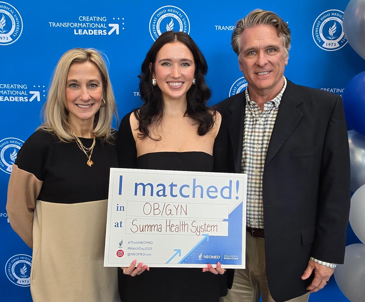 NEOMED’s College of Medicine Class of 2025 will pursue careers at prestigious medical systems in Ohio and across the country. They matched into residencies in family medicine, internal medicine, orthopedics, obstetrics and gynecology, and pediatrics, as well as emergency medicine, anesthesiology, and psychiatry.