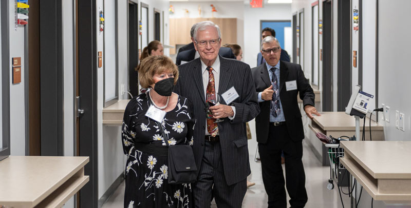 The alumni and their guests were able to reminisce during a walking cocktail tour of campus, where they made stops in the Olson Auditorium and in the Giant Eagle Commons study area – which many just knew as the study carrels when they attended NEOMED. They also received a tour of the NEOMED Health Care suite, led by John Boltri, M.D., chair and professor of family and community medicine.