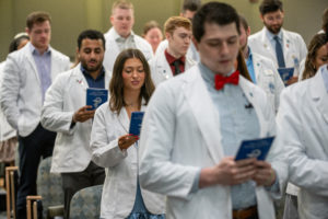 During the ceremony, each student was called to the front to receive the pin from a faculty member who has mentored and supported them throughout their studies. The pin, engraved with the Bowl of Hygeia, serves as a reminder of the students’ accomplishments and the journey ahead.